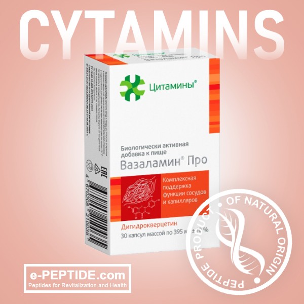 VASALAMIN® PRO is a peptide bioregulator of blood vessels and source of antioxidants. Recommended for the prevention of venous diseases and other cardiovascular diseases, to reduce cholesterol levels. Provides comprehensive support for the function of blood vessels and capillaries and protection of the cardiovascular system from adverse factors.